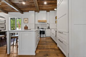 Original Face Skip Planed Reclaimed Oak Solid Plank Flooring, Reclaimed Hand Hewn Box Beams and Reclaimed Weathered Grey Barnsiding